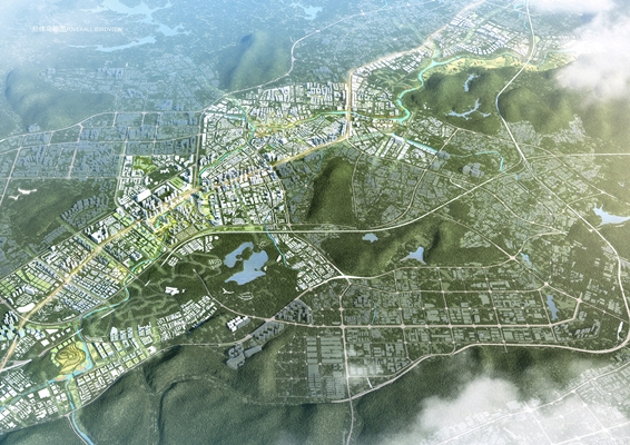 Aan het tot masterplan uitgewerkte deelgebied vloeien twee rivieren samen. Het gebied bevat een oud stedelijk weefsel en een park. Kenmerkend voor het gebied zijn de historische nederzettingen van de Hakka, een bijzondere culturele gemeenschap, legt KCAP uit.