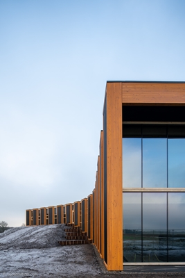 Speels ensemble van biobased gebouwen op plek oude ligboxenstal