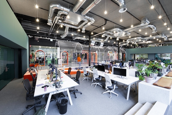 De installatie versmelt met de huidige co-working-architectuur
