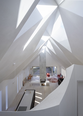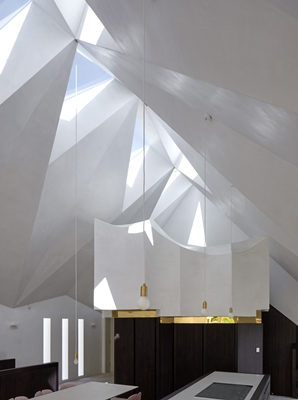 een voormalige kapel getransformeerd tot eigentijds woonhuis. Binnen de bestaande schil is een ruimtelijke, parelwitte leefruimte onder een gefacetteerd gewelf gerealiseerd. Het resultaat heet eenvoudigweg 'Chapel'.