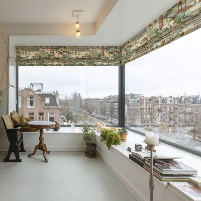 De erkers op de hoek van het gebouw zijn zo vormgegeven dat ze aan de binnenkant zijn te gebruiken als zitelement. De royale ramen bieden de bewoners een wijds zicht op de gracht en de bebouwde omgeving.