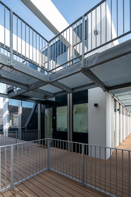 Op dit verleden heeft Urban Climate Architects een aanvulling willen zoeken, door een nieuwe tijdlaag toe te voegen, legt het bureau uit. Het resultaat bestaat uit tien woningen en bijna 1.500 m