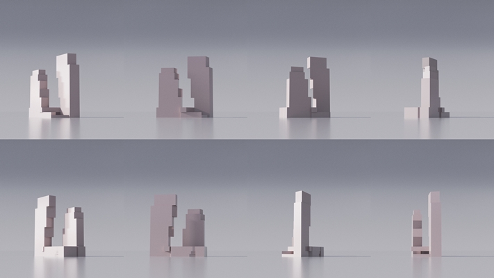“Als twee dansers leunen de torens tegelijkertijd in en uit elkaar”, meldt OMA. “De hogere toren wordt breder richting het oosten terwijl deze oprijst, richt zich daarbij maximaal op het uitzicht, en creëert een dramatisch gezicht naar de buurt en daarbuiten.”