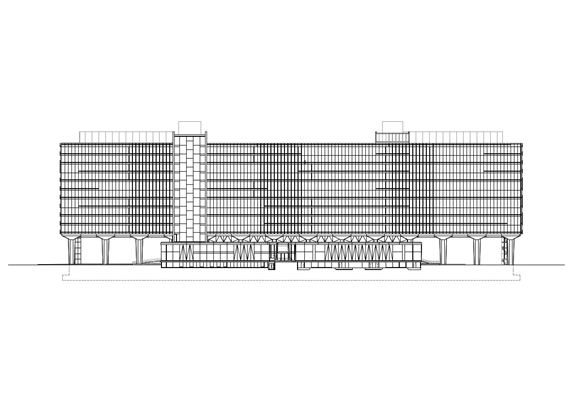 De laagbouw heeft weer een rondom transparantere uitstraling en verbinding met de omgeving gekregen. In de hal is de verdiepingsvloer deels weer weggehaald en de kathedrale sfeer hersteld met een centrale open ruimte; langs de zijden liggen een restaurant en studieruimten, die de studenten een beslotener en intiemere plek bieden.