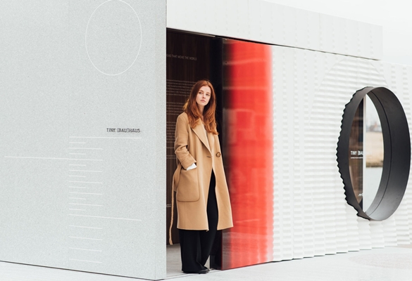 een compact paviljoen ontworpen, dat voor een groot deel bestaat uit 3D-geprinte onderdelen. Het zogeheten ‘Tiny [Bau]Haus’ fungeert als reizend expositiepaviljoen en staat vanaf 11 april bij Het Nieuwe Instituut.