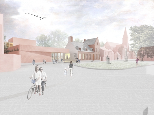 Het nieuwe centrum moet onderdak bieden aan een bibliotheek, gemeenschapszaal en jeugdcentrum. Uit vier inzendingen is gekozen voor het voorstel van de bureaus Bob McMaster (Gent) en krft architecten (Amsterdam), vanwege āde vernuftige inpassingā van de drie programmaonderdelen, aldus het Amsterdamse bureau.