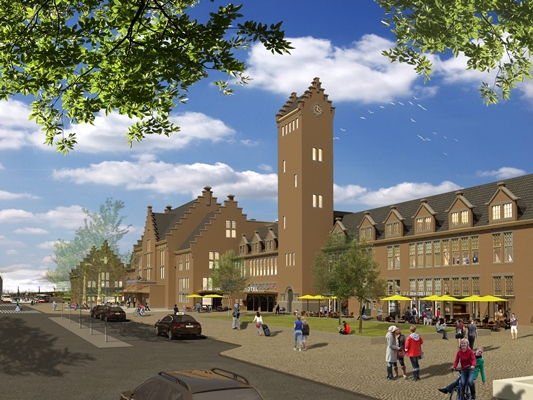 Om het station beter te verbinden met het heringerichte stationsplein en de Stationsstraat, wordt de gevel aan deze zijde op strategische plekken geopend. Deze ingreep past in de oude structuur en aanzicht van het gebouw, meldt Ruland Architecten. Sommige winkels en horecafuncties zijn straks direct bereikbaar vanaf het plein, waar ook terrassen kunnen komen.