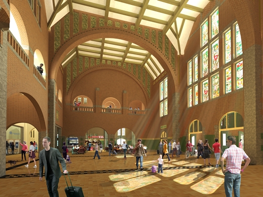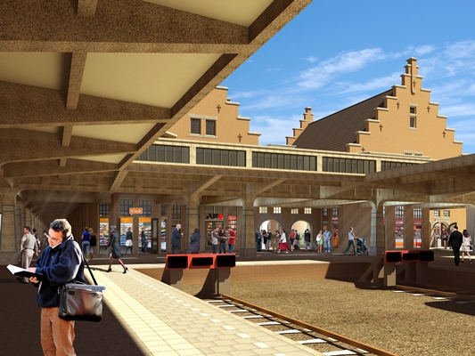 , dat het ontwerp voor de verbouwing heeft verzorgd, wil de oude grandeur van het station terugbrengen. Zo wordt de oorspronkelijke route voor reizigers in ere hersteld en krijgt de oude ‘visitatiehal’, die nu in gebruik is bij de NS, zijn publieke functie terug, en wel als grand café. Daarnaast worden winkels verplaatst en leegstaande ruimtes opnieuw ingevuld.