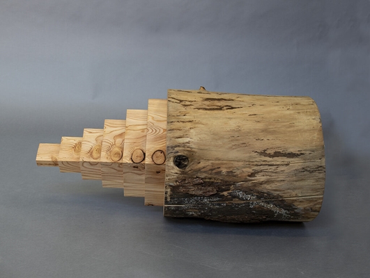 In vervolg hierop bedacht Eek een object dat misschien meer een ‘echt product’ is geworden: een ‘boomstam-telescoop-object’, zoals hij het eindresultaat noemt. Het toegepaste aspect aan het ontwerp is dat het een zitfunctie heeft, maar Eek vindt het mooiste aan het object dat het in uitgeschoven toestand het zagen, het hout en de natuur zichtbaar en voelbaar maakt.