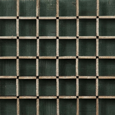 De houten plaatjes zijn alle hoek-op-hoek verlijmd. Door de driedimensionale opbouw veranderen de wandsculpturen van kleur als je erlangs beweegt, of als je het werk zelf beweegt.