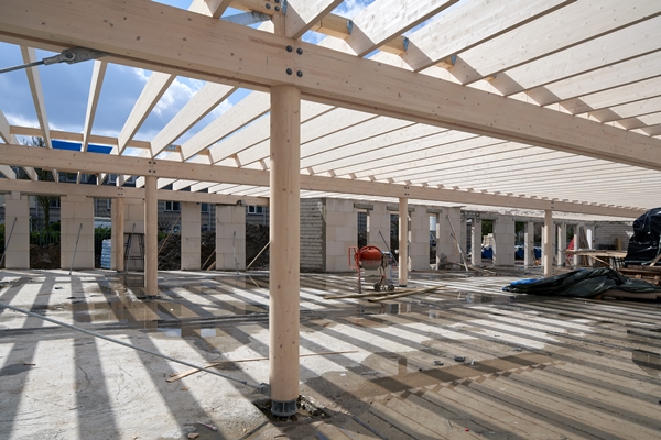 Verder betekent de keuze voor hout een lage milieulast en schaduwkosten, aldus RoosRos. Het architectenbureau heeft vroeg in het proces een houtbouwer bij het project betrokken. In samenwerking is de houtconstructie technisch uitgewerkt – compleet in BIM – en kant-en-klaar op de bouwplaats aangeleverd. Het casco is in vier weken geassembleerd.
