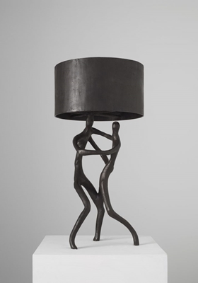 Ook bij Vincenzo de Cotiis Gallery, in samenwerking met Carpenters Workshop, was een kunstzinnig verlichtingsobject te zien. De Dancing Lamp is al een aantal jaren ouder. De voet van de lamp bestaat uit twee rond elkaar bewegende figuren; dansen ze of vechten ze? De lamp laat zien hoe alle – tegengestelde – facetten samengaan, niet altijd te scheiden zijn, of niet zonder elkaar kunnen bestaan.