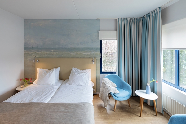 is onlangs het gasthuis van het Antoni van Leeuwenhoek-ziekenhuis in Amsterdam gerenoveerd. Tegen een scherp budget heeft het bureau het overnachtingsverblijf voor poliklinische patiënten en familie en vrienden van patiënten in het oncologisch ziekenhuis een opfrisbeurt gegeven.