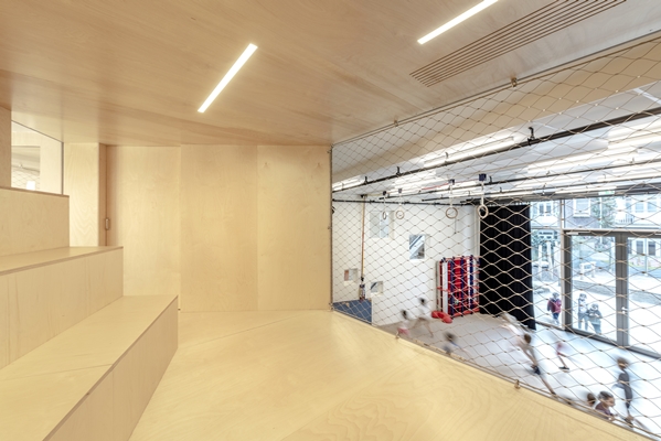 Het onderwijsgebouw is gesitueerd in de rustige omgeving van achtertuinen van een Amsterdams bouwblok. Het pand, dat stamt uit de jaren twintig van de vorige eeuw, bezat oorspronkelijk een overmaat een verdiepingshoogte, ruime trappenhuizen en royale gangen en lokalen, meldt Heren 5 architecten.