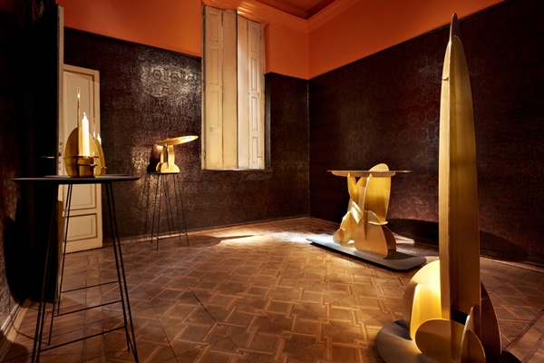 De ‘Interlocking Panels’ van Van Bleiswijk sluiten enerzijds mooi aan op ‘Space Poetry’: ruimtelijke objecten, die ook een functie kunnen vervullen (als verlichtingsobject of kaarsenhouder, in dit geval). Anderzijds contrasteren ze met Van Eijks objecten door de ovale vormen – geïnspireerd op kiezels – en glanzend metalen oppervlakken.