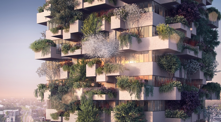 Kunnen we onze steden verdichten en tegelijkertijd de leefbaarheid en duurzaamheid ervan een impuls geven? Dat is de belofte van groene hoogbouw. Door het opnemen van beplanting tot op grote hoogte woont iedereen in het groen, met alle bijbehorende voordelen: frisse lucht, opvang van water en fijnstof, vergroting biodiversiteit, enzovoorts.