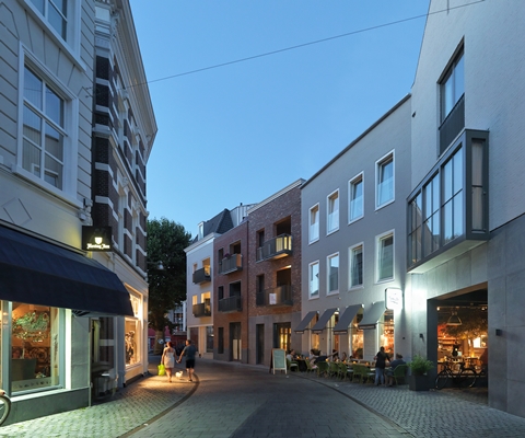Witte wijk met getrapte straatwanden in Maastricht naar ontwerp Bedaux de Brouwer