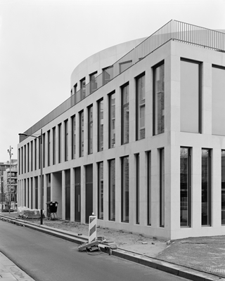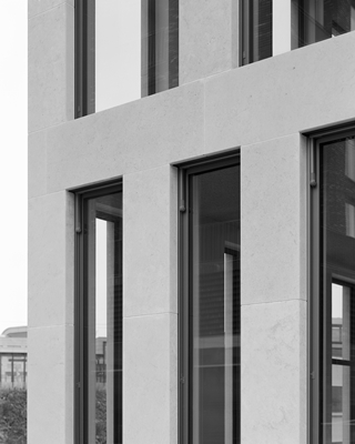 Rapp+Rapp heeft de gevels ontworpen met een regelmatige, klassieke geleding van verticale pilasters. Op de begane grond staan deze verder uit of juist dichter bij elkaar ten opzichte van de bovengelegen verdieping. Dit leidt tot een perspectivisch spel en is tegelijkertijd een functionele oplossing.