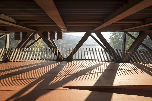 Het project bestaat feitelijk uit een brug boven een brug. Het onderste niveau bestaat uit een open stalen vakwerk en doet denken aan een overdekte straat voor voetgangers, aldus Atelier FCJZ. Het hogere niveau is een in situ gestorte betonnen boog, waarin een tentoonstellingsruimte is ondergebracht.