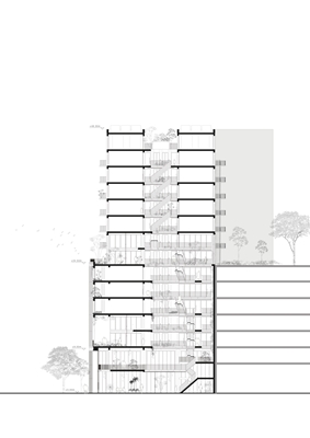 Het gebouw biedt plaats aan 66 woningen en een commerciële plint. Centraal in het gebouw komt een groen atrium, dat de verbinding moet leggen tussen de functies wonen, werken en ontmoeten. Ook zogenaamde ‘tuinpockets’, ontmoetingsruimten tussen de woningen op verschillende lagen van het gebouw, moeten zorgen voor verbinding.