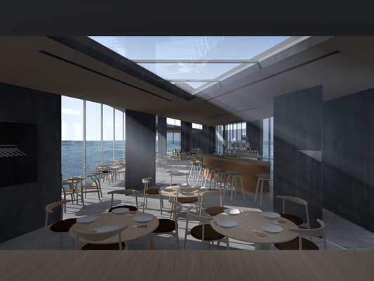 De voormalige stuurhut gaat plaats bieden aan een moderne open keuken. De gasten kunnen terecht in de bar, vijf verschillende eetruimten, een centraal gesitueerd atrium en op een terras. Het interieur wordt huiselijk en uitgevoerd in hout en andere natuurlijke materialen, aldus Zubiria.