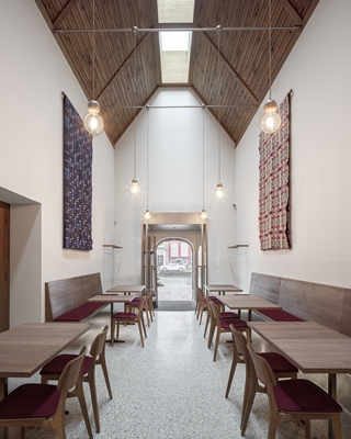 De verbinding van heden en verleden heeft Happel Cornelisse Verhoeven op alle vlakken gelegd. Dat begint al aan de gracht, waar de smalle, dichte gevel van het café een eigentijdse versie betreft van de net zo dichte gevel die hier voorheen stond. Maar het zit ‘m bijvoorbeeld ook in de betonterrazzovloer die zowel op de begane grond van de Lakenhal, als op de Achterplaats, als in de nieuwbouw te vinden is. Het is oud en nieuw tegelijkertijd.