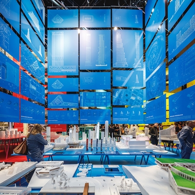 In de hoofdzaal kunnen bezoekers de mogelijke toekomst zien aan de hand van projecten die momenteel op de tekentafels, harde schijven en in maquettewerkplaatsen van de BIG-vestigingen worden ontwikkeld.