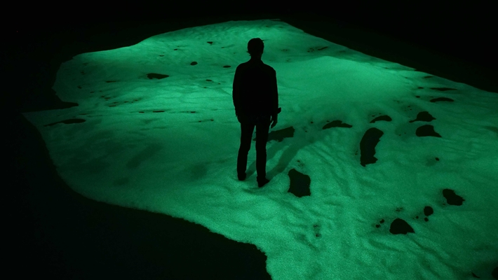 Het is een vervreemdende ervaring: jouw eigen schaduw blijft vastomlijnd achter, terwijl je zelf verder loopt. In de serie van interactieve installaties die Studio Roosegaarde voor het Groningen Museum heeft ontworpen, is het een van de hoofdthema’s. Roosegaarde bouwt de ervaring zorgvuldig op, beginnend met het zetten van voetafdrukken, dan wordt je gescand, vervolgens ga je als het ware op een kamergrote foto, en tenslotte kun je een afdruk maken met jouw lichaam.