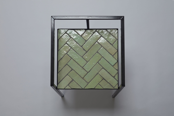 Zo is een stoelzitting voorzien van de groene zeshoekige tegels, die Studiospacious heeft verwerkt in de bestaande parketvloer bij de verbouwing van een jaren 20-woonhuis in Haarlem. Het visgraatpatroon met geglazuurde Marokkaanse Bejmat-tegels heeft het bureau toegepast in de badkamer bij de verbouwing van een Amsterdamse bergingenzolder tot loftwoning.