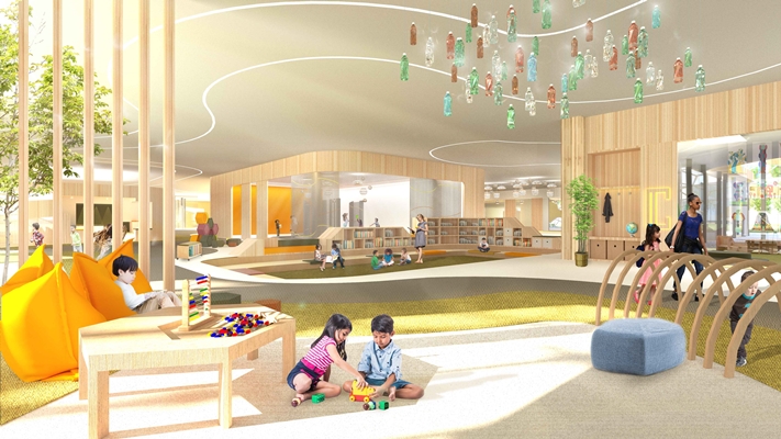 Volgens de winnende visie komen de jongste kinderen beneden in het gebouw en de oudere boven. In het hart van het gebouw is ruimte voor ontmoeting, met sport, muziek en drama als verbindende factoren. “Je hoeft elkaars taal niet per se te spreken, maar hier vind je elkaar in gemeenschappelijke interesses waarbij je elkaar spelenderwijs leert kennen.”, aldus de architecten.