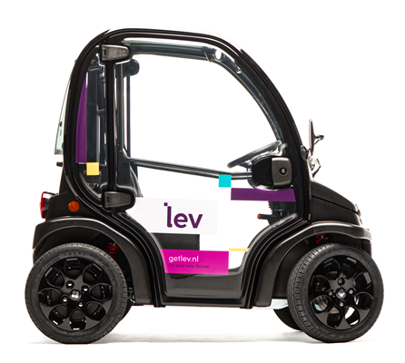 Een Lev-voertuig neemt aanzienlijk minder ruimte in dan een auto. Het voertuig biedt plaats aan twee personen en enige bagage. De wagens rijden maximaal 45 km/uur.