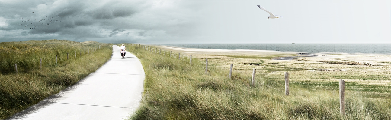 De nieuwe duinen langs de Prins Hendrikdijk sluiten aan op de bestaande duinen bij de zuidpunt van Texel en gaan geleidelijk over in de Waddennatuur van schorren, slikken en zandplaten. De hoogte en vorm van de duingebieden in de omgeving waren een inspiratie voor de ruimtelijke inrichting van het landschap, laat Feddes/Olthof weten.