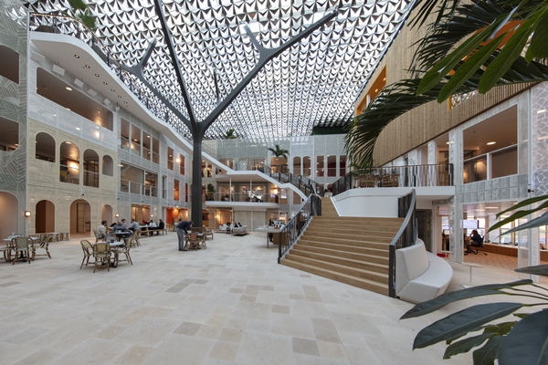 De 600 voorheen verspreid werkende medewerkers zijn samengebracht in een bestaand gebouw op de Amsterdamse Zuidas, dat sterk is verbouwd en sterk verduurzaamd. De betonstructuur, hoofdopzet en veel materiaal zijn behouden; bij toevoegingen als nieuwbouwvolumes en het ‘bladerdak’ zijn duurzame keuzes gemaakt. D/DOCK en Benthem Crouwel Architects wisten in co-creatie met alle uitvoerende partijen en de toekomstige gebruikers een breed gedragen resultaat te bereiken.