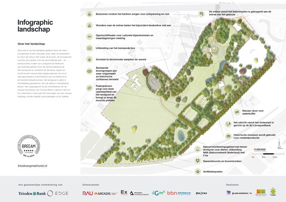betrokken bij het project het zegt: “We wilden geen bank huisvesten in een gebouw, maar een bank op een landgoed.” De komst van de Triodos Bank naar De Reehorst moest een kwaliteitsimpuls voor het hele gebied betekenen, een versterking van zowel de ecologie als de cultuurhistorische waarde van het landgoed.
