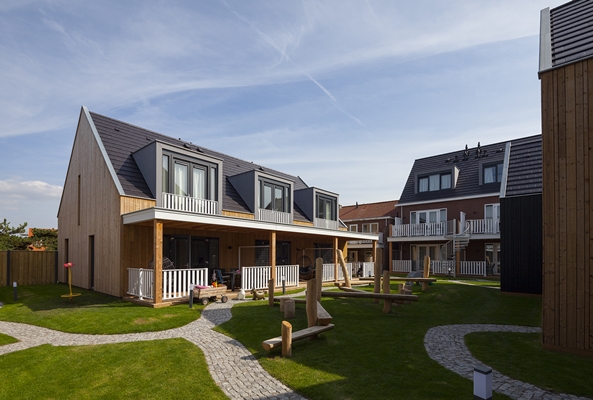 Midden in het dorp Zoutelande aan de Zeeuwse kust is onlangs een mini-vakantiepark met twintig eenheden opgeleverd. Het ontwerp van