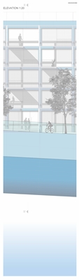 De woningen bieden zicht op het water en de omgeving en zijn voorzien van buitenruimtes waarvan de mate van privacy door de bewoners zelf kan worden bepaald. Aan de straatkant, op enige afstand van de woningen, staat een tweede doorschijnende gevel met beweegbare panelen. Deze bieden de bewoners om hun balkon aan het zicht te onttrekken van voorbijgangers – of juist niet.