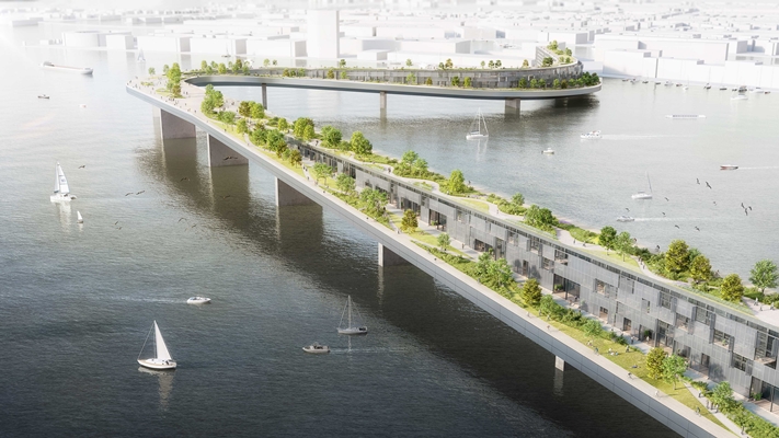 Een ‘levende’ brug met een park en woningen als verbinding over het IJ in Amsterdam. Dat voorstel doet de Duitse architect Dominik Philipp Bernátek voor de veelbesproken fiets- en voetgangersverbinding die de stad wil realiseren. De combinatie van functies maximaliseert het ruimtegebruik en verleent de brug attractiewaarde, meent Bernátek.
