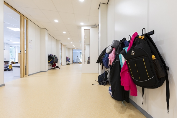 Zowel het primair als voortgezet onderwijs heeft zijn eigen atrium, met tribunes en trappartijen. In de basisschool is naast het atrium een speelruimte gecreëerd, die dankzij transparante scheidingswanden kan worden afgesloten van of juist verbonden met de centrale ruimte.