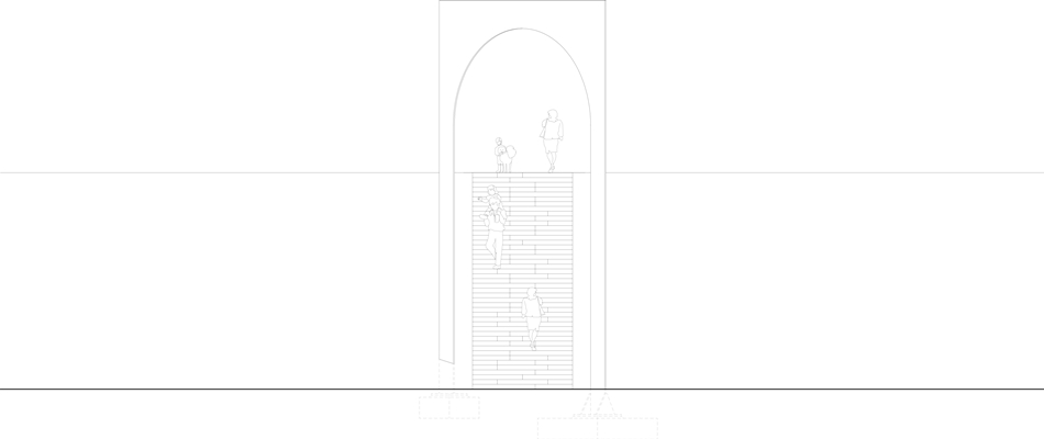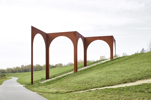een permanent kunstwerk in de openbare ruimte gerealiseerd. Met Arcade, bestaande uit stalen platen waaruit klassieke boogvormen zijn gesneden, wil het duo een historische verbinding herstellen.