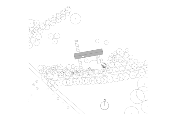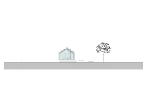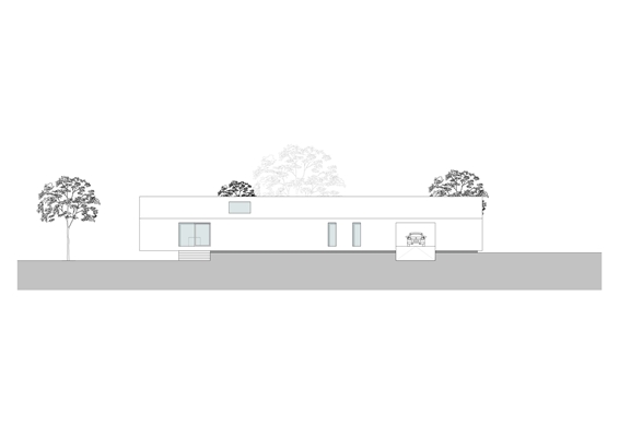 De woning is haaks op de zichtlijn vanaf het toegangsweggetje richting een grote boom geplaatst en rust op een drie meter lange betonnen plint. Wie door de woning loopt, heeft een telkens variërend uitzicht op het omringend landschap. “Soms loop je langs het landschap, soms ernaartoe of er vanaf en soms vormt het landschap de achtergrond voor de inrichting”, zo verwoordt auteur Karin Venema het namens het architectenbureau.