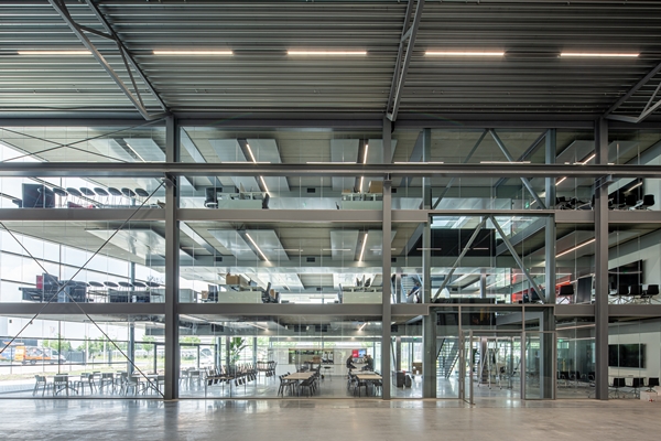 In tegenstelling tot de verouderde, gesloten structuur van de eerdere panden heeft de nieuwbouw een open en transparant karakter, legt het architectenbureau uit. Dit verkort de communicatielijnen, onder andere tussen de ontwerpers op kantoor en de monteurs op de assemblagevloer.