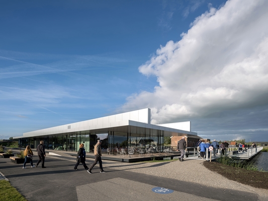 Vorige maand heeft prinses Beatrix het Bezoekerscentrum Werelderfgoed Kinderdijk geopend. Het gebouw is samen met het vernieuwde entreegebied voor de bekende molens ontworpen door