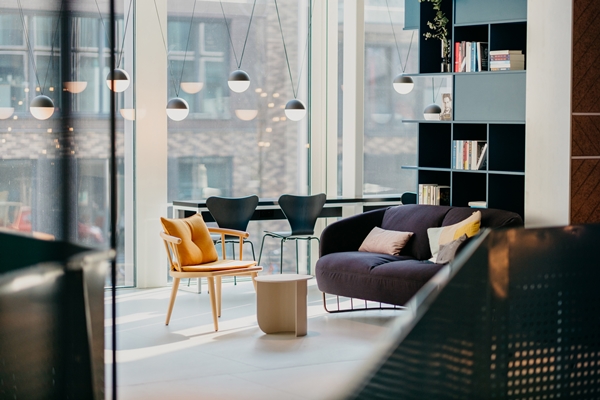 Ondanks de prominente aanwezigheid van de mezzanine moet de centrale ruimte, waar zich verder ook de receptie en het restaurant bevinden, aanvoelen als één gemeenschappelijke ruimte. In plaats van dat de focus op een specifieke functie ligt, fungeert de ruimte volgens Ninetynine ‘als één grote studentenwoonkamer’ waar kan worden ingecheckt, gegeten, ontspannen en meer.