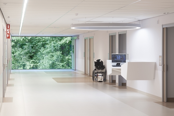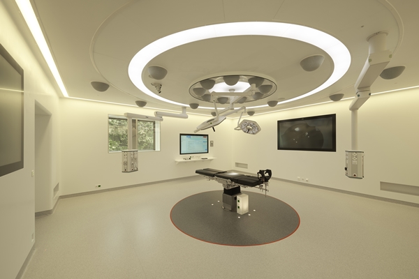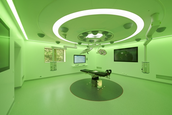 De uitbreiding omvat zeven operatiekamers, alle voorzien van een innovatief luchtbehandelingssysteem en, met het oog op optimale hygiëne, volledig naadloos uitgevoerde wanden. Positief geladen titaniumdioxidedeeltjes in de wanden zorgen bovendien voor afstoting van stof, bacteriën en schimmels.