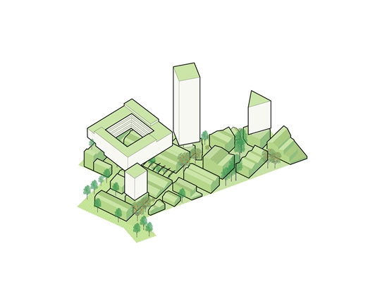 Het plan - waarbij Buro Harro, Civic Architects, Marco Broekman, Braaksma & Roos en VenhoevenCS als ontwerpers zijn betrokken - bestaat uit een netwerk van pleinen, tuinen en straatjes met erboven vier zwevende hoogbouwelementen. De openbare ruimte, gevels en daken in het lager gelegen deel worden letterlijk groen; het geheel wordt begroeid met gevarieerde beplanting.