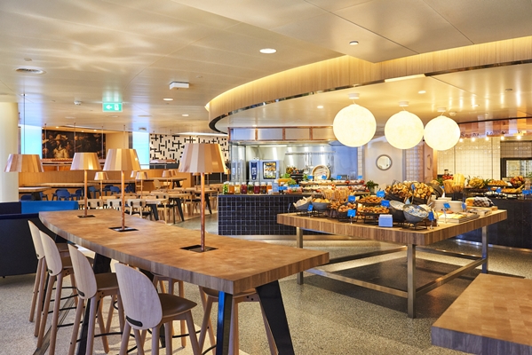 ‘Sky’ biedt de mogelijkheid tot culinair hoogstaand eten en drinken in een betaald restaurant en bar 'Blue', met een menu dat wordt samengesteld door Joris Bijdendijk van het Michelin-bekroonde restaurant Rijks. In het gebied ‘Sea’, tot slot, kan de reiziger zich opladen en opfrissen dankzij slaapcabines, douches en ‘sensory reality cabins’, cabines die met licht, geluid en geur omgevingen oproepen.