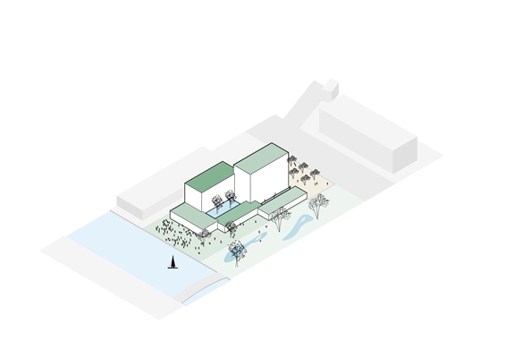 ontworpen als een aantal zelfstandige volumes in een parkachtige omgeving, waarvoor