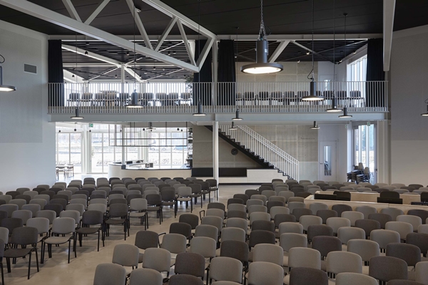 Opvallend is dat de organisatie niet per se een aparte ruimte voor de kerkdiensten wilde hebben. Ze wenste juist een open verbinding, zodat bezoekers vanuit het café of vanaf het balkon een dienst bijwonen. Halverwege aanschuiven of de dienst verlaten kan zonder dat het opvalt of afleidt; de sfeer is bijgevolg ongedwongen.