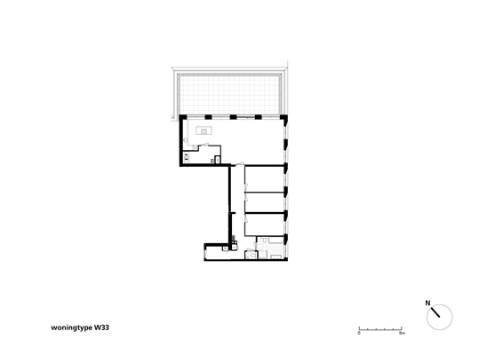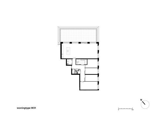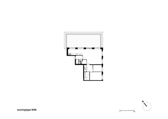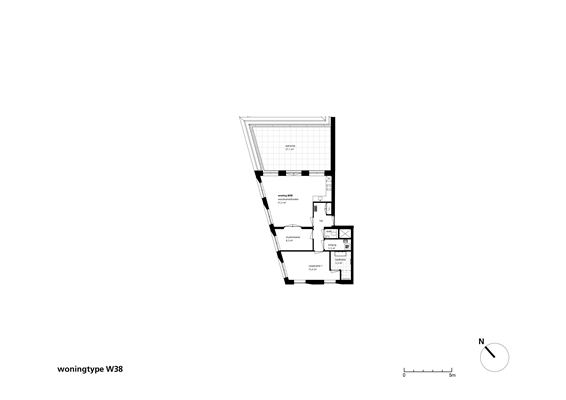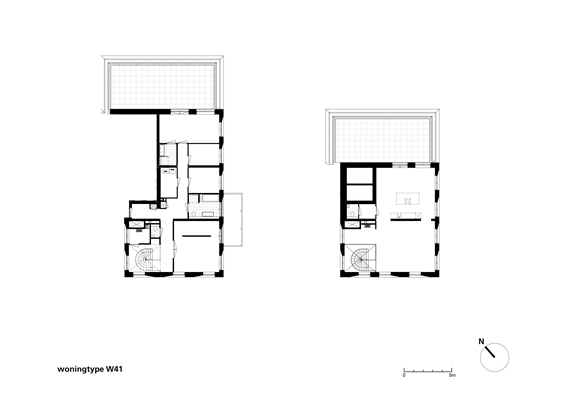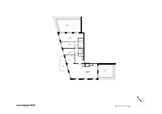 Door de terrassenstructuur van de drie gebouwen kent het plan, naast tussenwoningen, een groot aantal woningen met een hoekoriëntatie, of zelfs drie oriëntaties. Op de hoogste lagen is een aantal extra grote penthouses met elk twee of drie terrassen ontworpen.