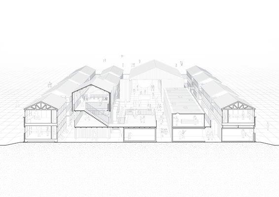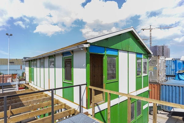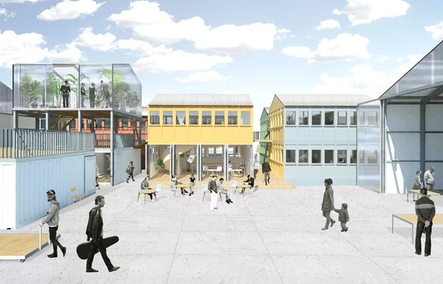 Hergebruik van veelvoorkomende bouwmaterialen werd daarom het vertrekpunt voor het architectonisch ontwerp. Aanvankelijk werd gedacht aan een herhalend ontwerp met zeecontainers, maar toen de economie aantrok bleek dat te kostbaar; uiteindelijk is gekozen voor de houten schottenkeet als bouwsteen.